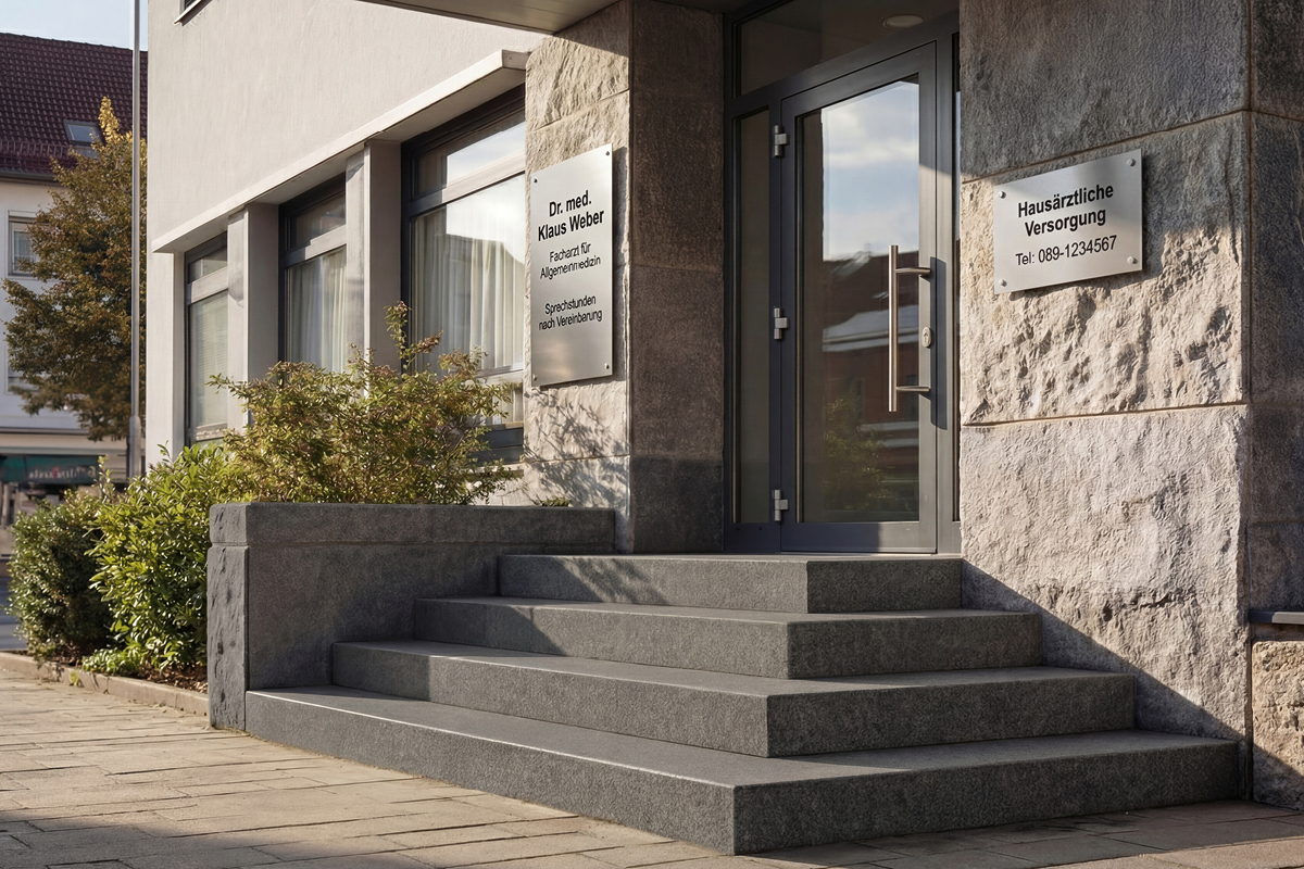 Sicher und rutschfest: Mit InnoStone modernisieren Sie Eingangsbereiche und Treppenstufen von Arztpraxen im Außenbereich schnell, sauber und zum Festpreis – ohne Staub, Lärm und lange Ausfallzeiten Ihrer Praxis.