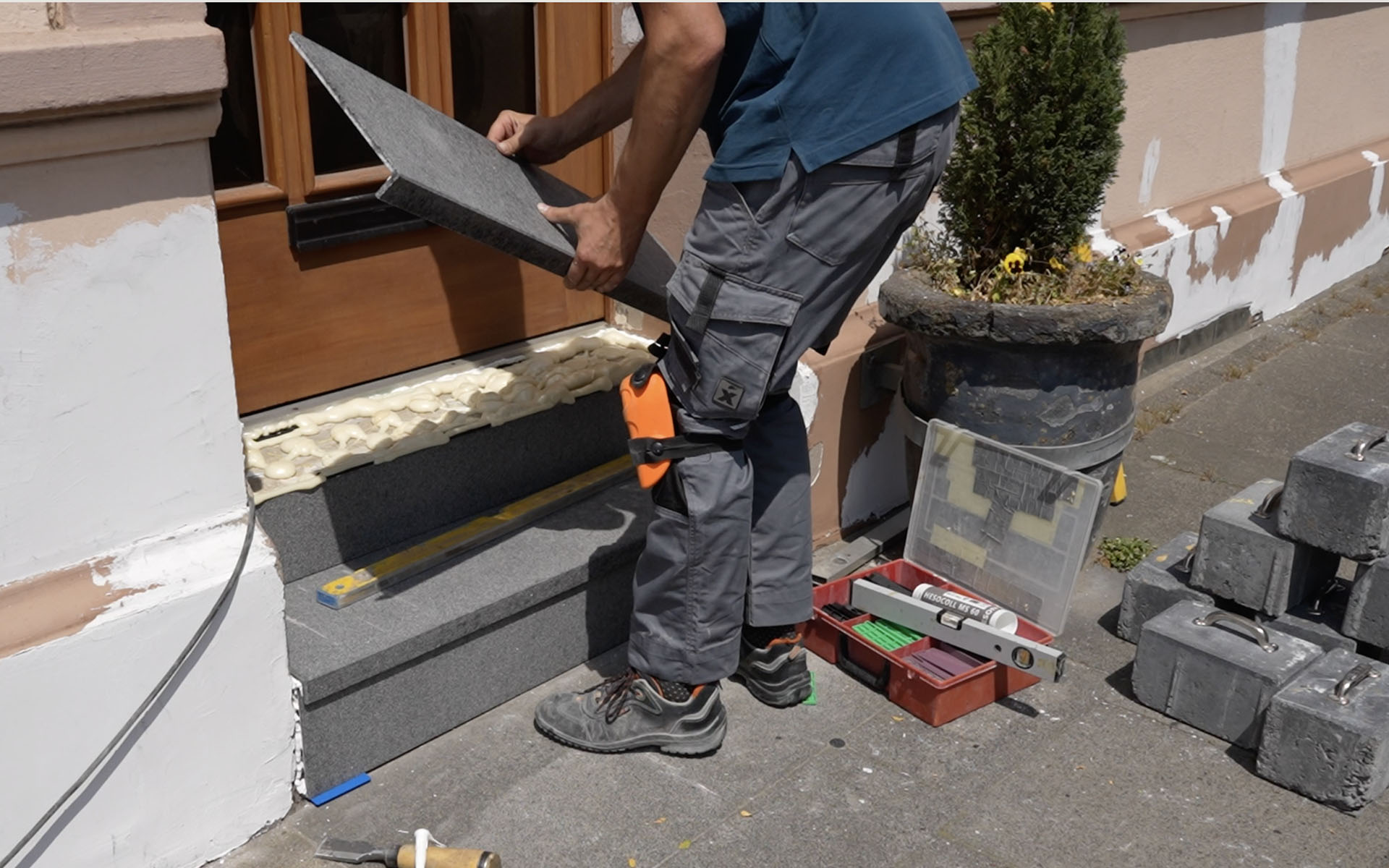 Damit Ihr Podest oder Ihre Außentreppe bereits nach kürzester Zeit wieder genutzt werden kann, ist eine fachgerechte Verlegung entscheidend. Unsere geschulten Mitarbeitenden und zertifizierten InnoStone-Händlerinnen und -Händler verstehen ihr Handwerk und arbeiten schnell, sauber und präzise. So wird die Erneuerung Ihrer Bestandsflächen oft in nur wenigen Stunden umgesetzt – ganz ohne langwierige Baustelle.